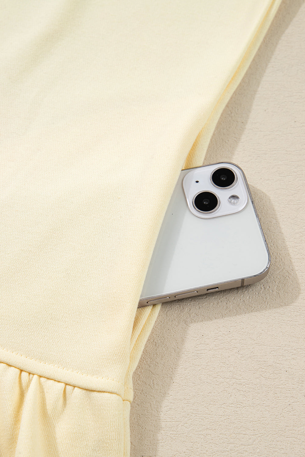 Beige Double Tiered Ruffle Hem Long Sleeve Loose Mini Dress