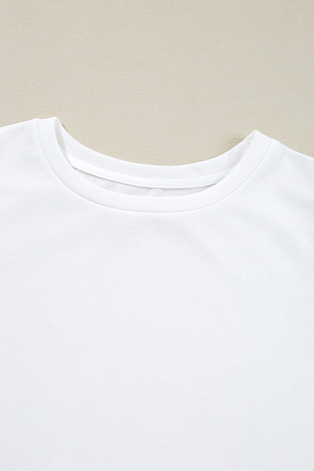 White Floral Crochet Patched Ruffled Sleeve Crewneck Blouse