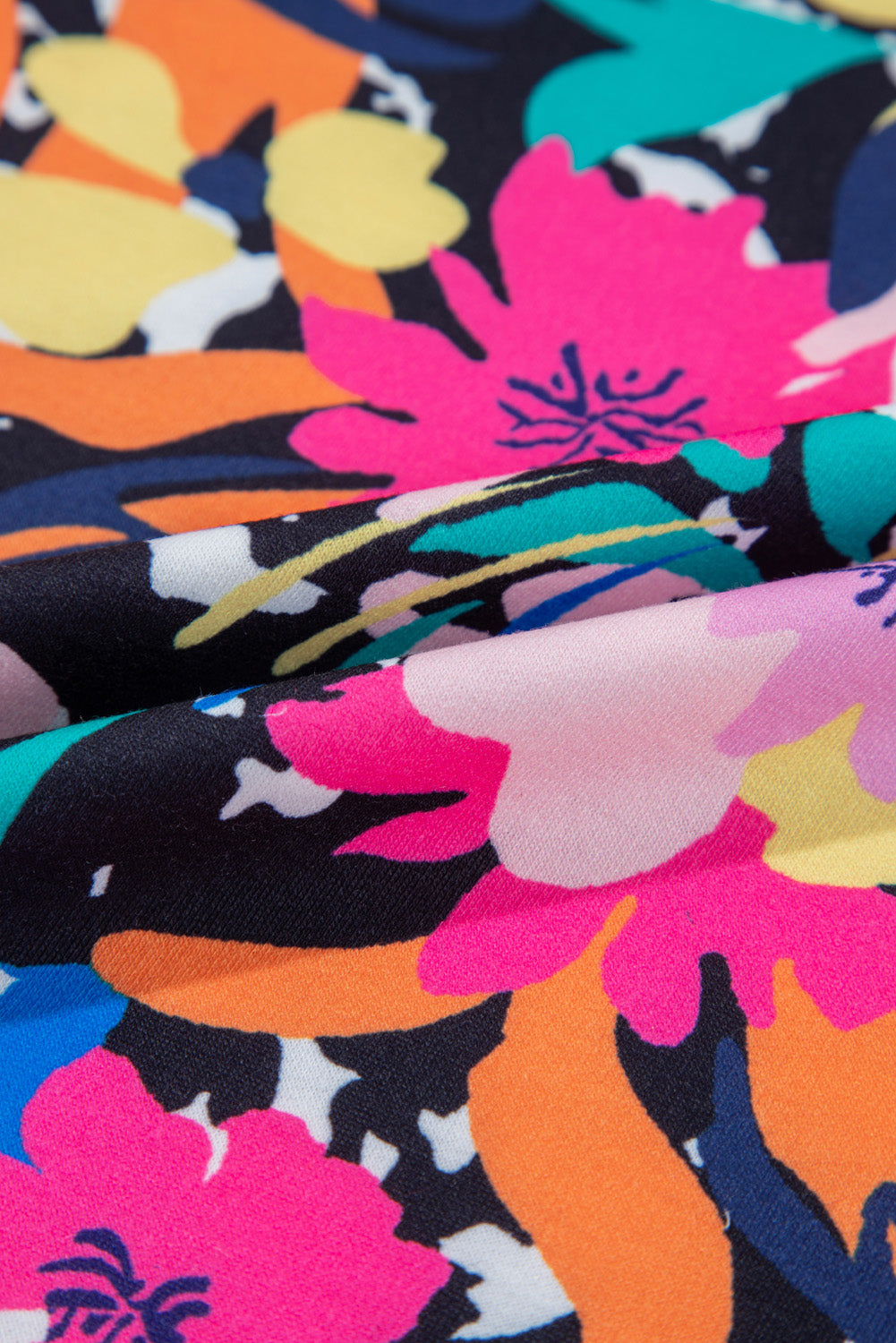 Rose Floral Short Sleeve Contrast Edge Plus Size Henley Top