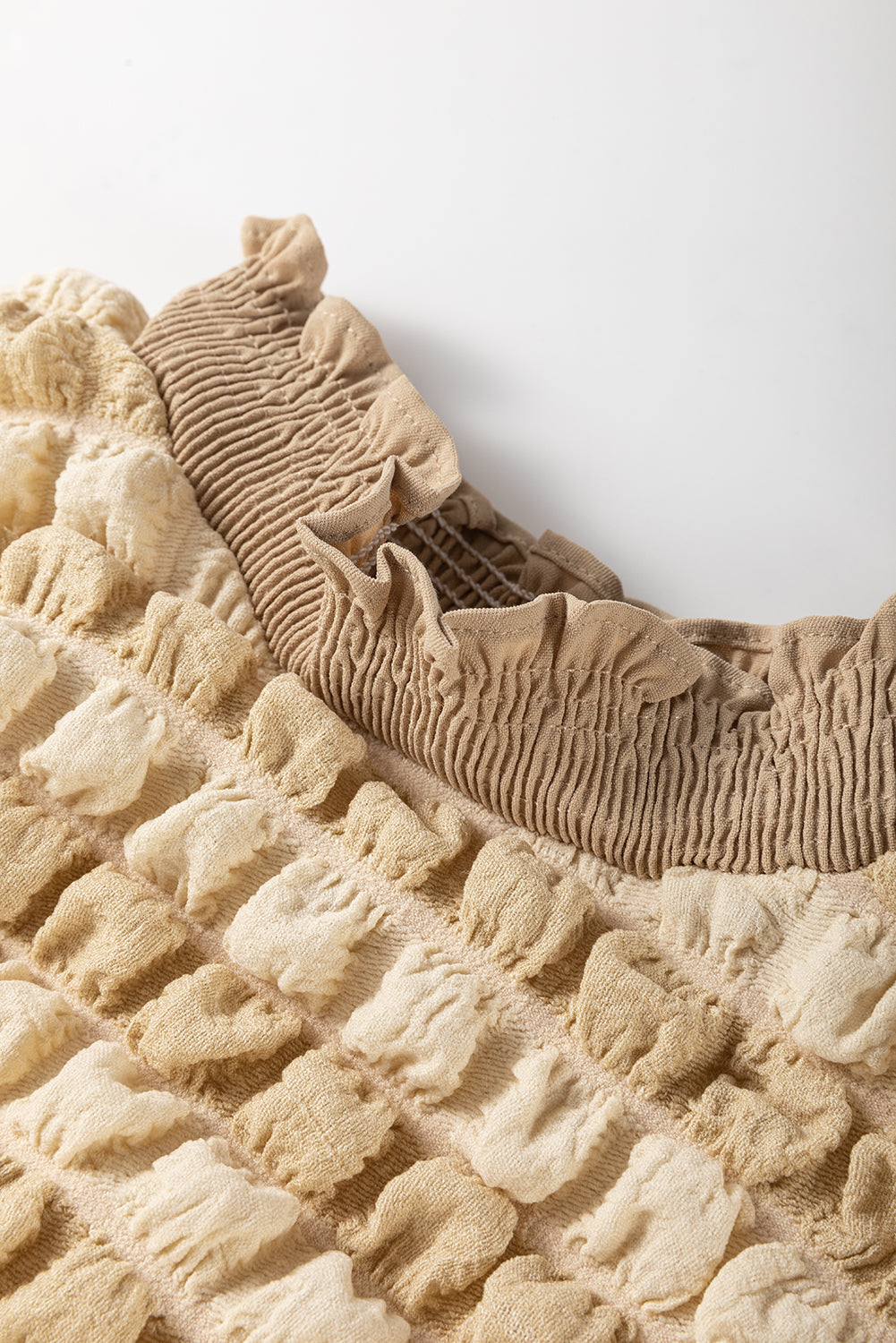 Beige Textured Mock Neck Short Sleeve Blouse