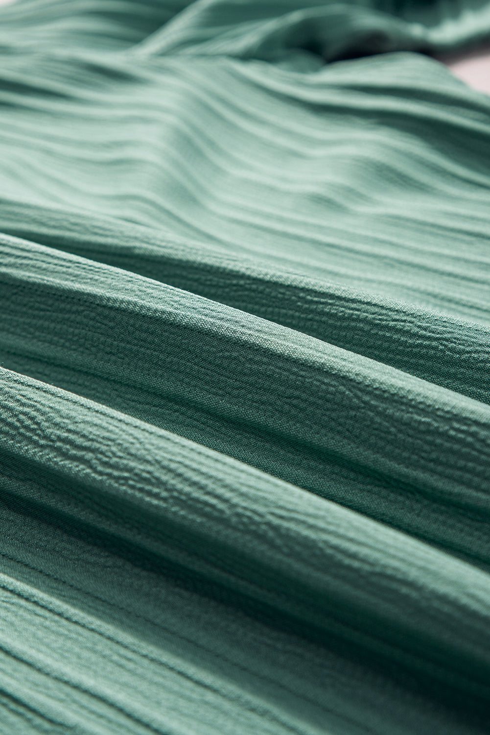 Grass Green Ruffled Half Sleeve V Neck Textured Top