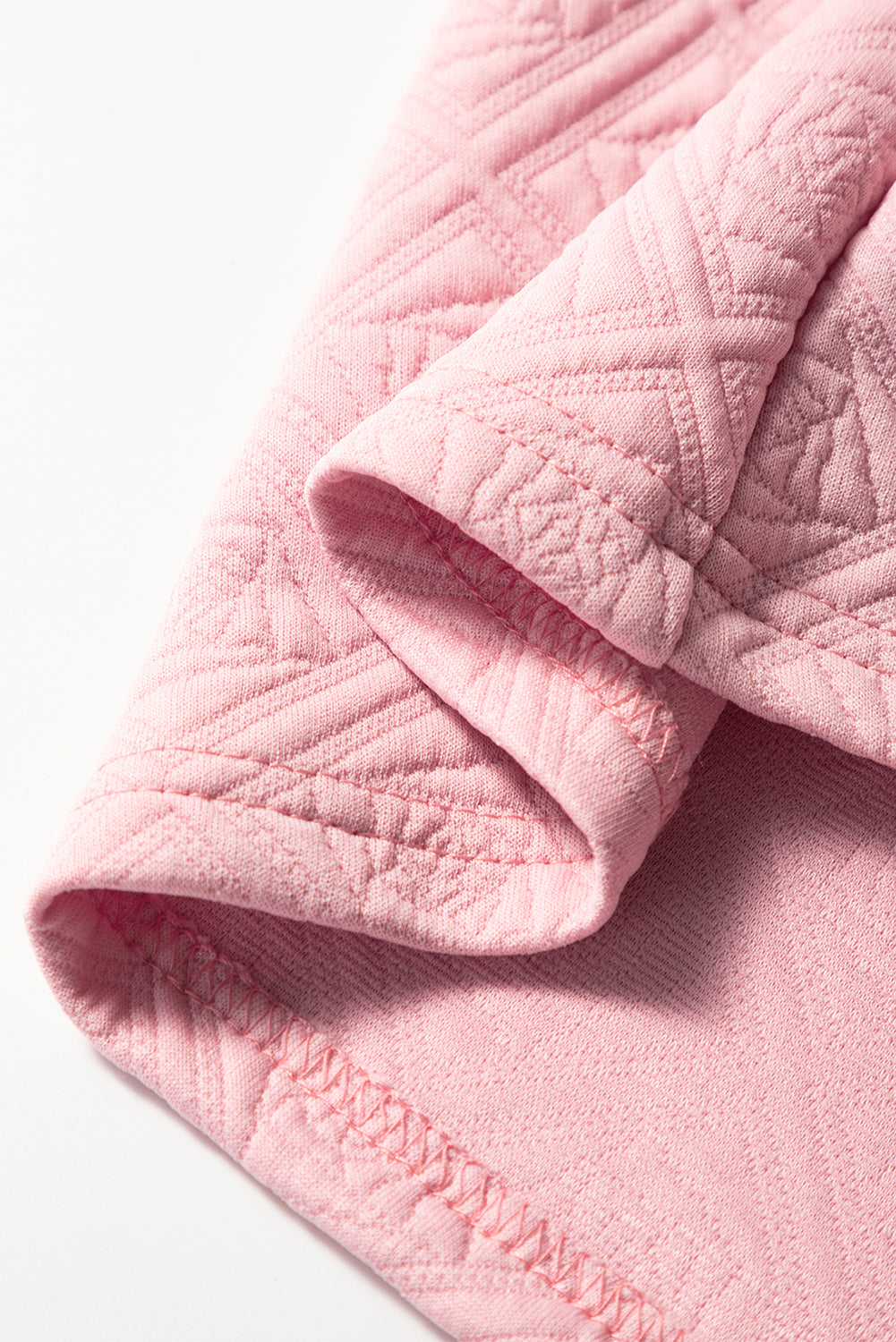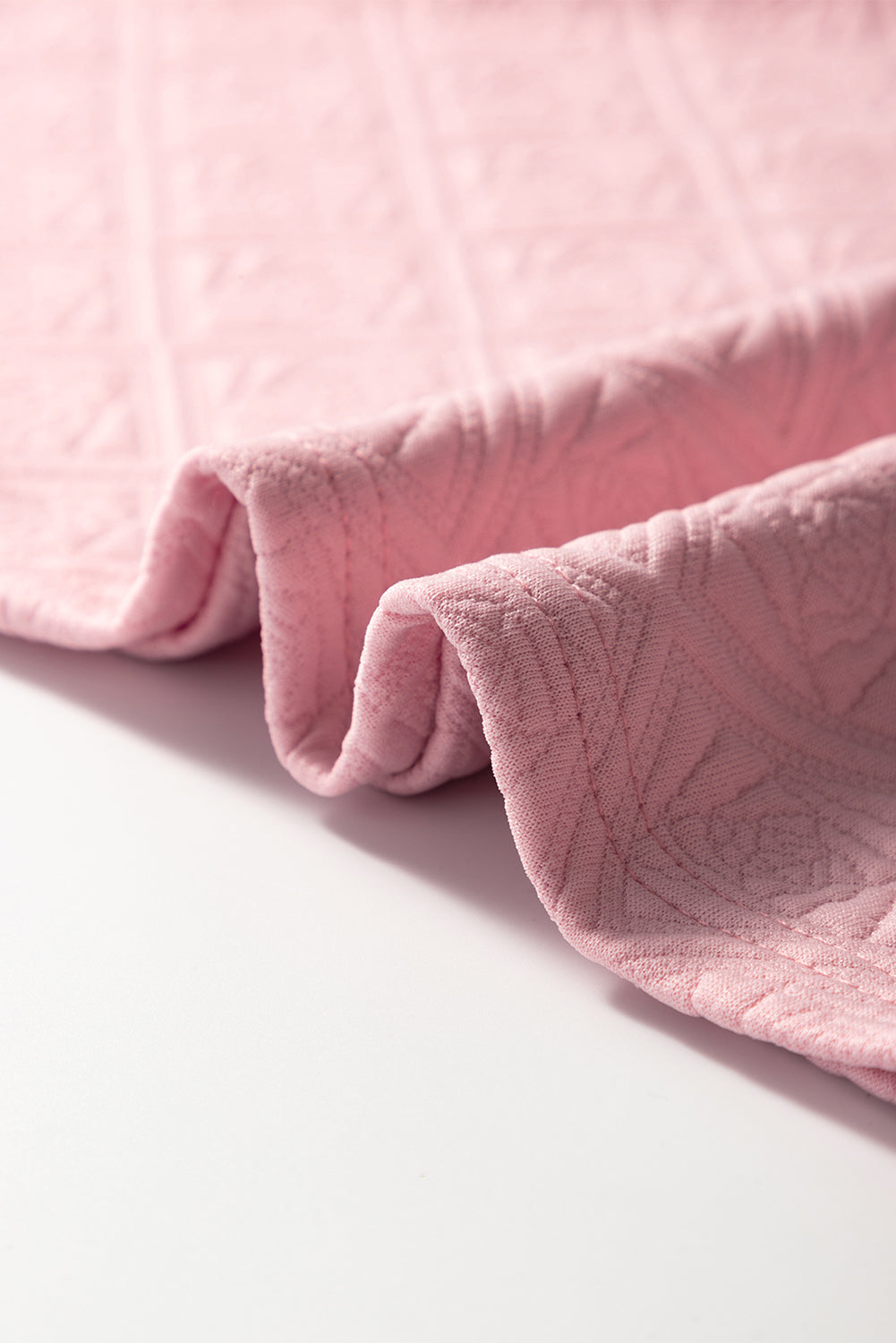 Light Pink Pearl Embellished Flower Textured T Shirt