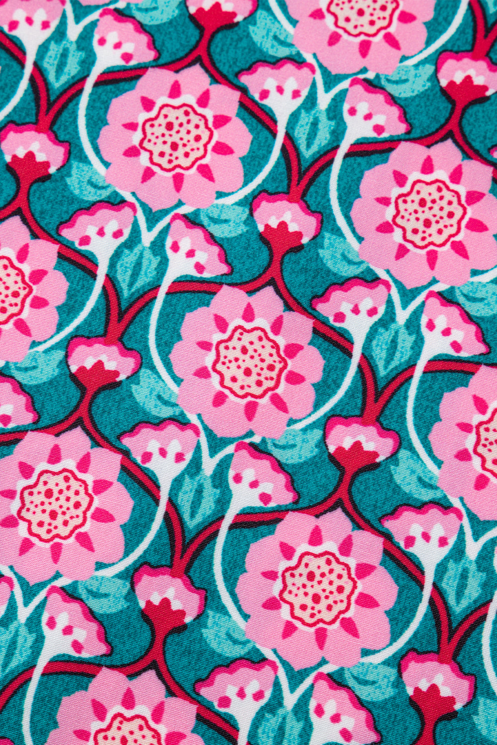 Sachet Pink V-Neck Ruffle Abstract Floral Print Puff Sleeve Top