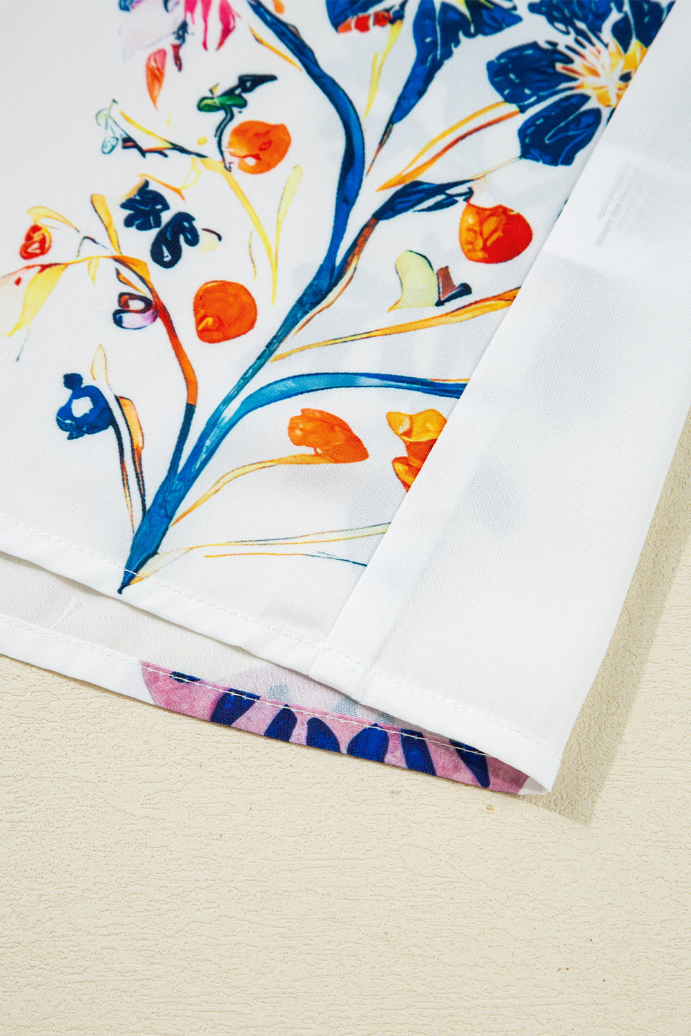 White Floral Print Tassel Tie Bracelet Sleeve Flowy Blouse